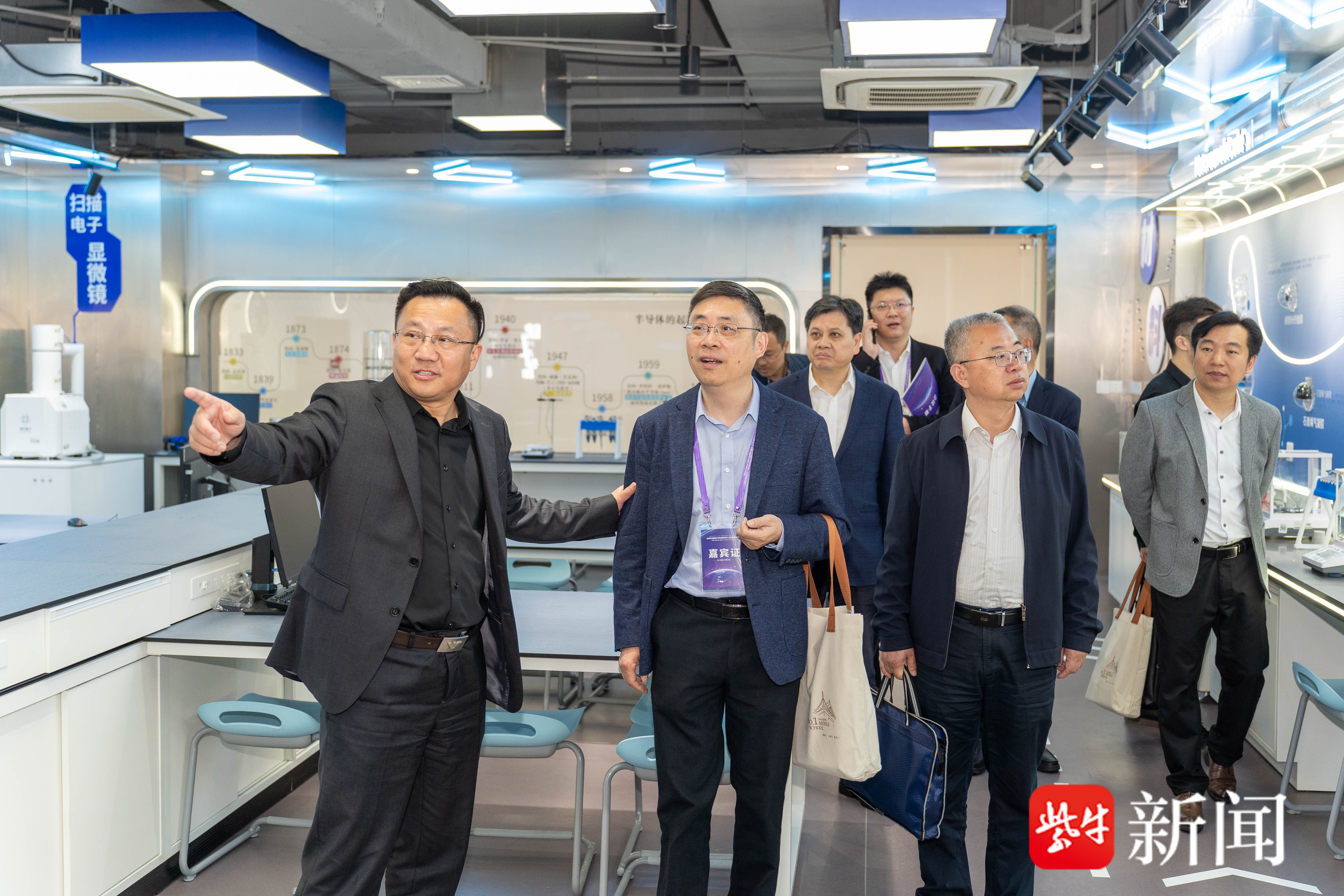 会后,南京市陶冶局局长、市委陶冶工委布告吴秀亮、南京市陶冶局副局长、工委委员周鹏走进南京一中浸润式科学课程基地,参不雅了江苏省浸润式物理学习课程基地、创作念坊、制造社、科学广场等校园科学场地,深入了解南京一中科学陶冶课程矩阵及拔尖改进东谈主才培养本质警告。